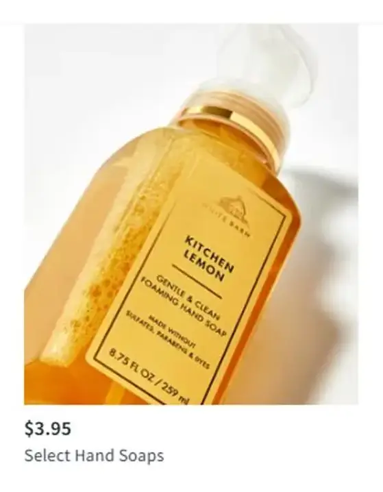 Get it now! Shop in store and get select hand soaps for $3.95.
